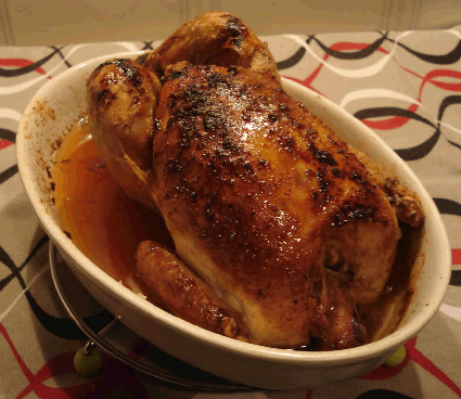 Colocar o frango dentro de um pirex, mais ou menos do tamanho do frango, e colocar nozinhas de vaqueiro em cima e dentro do frango. Levar ao forno e ir regando com o molho.